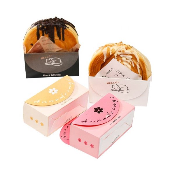 Custom Bagel Scoop Bakery Box for Round Croissants Foldable Logo Printed Waffle Sleeve Paper Mini Burger Churro Box Paper Sleeve