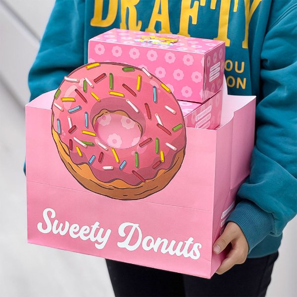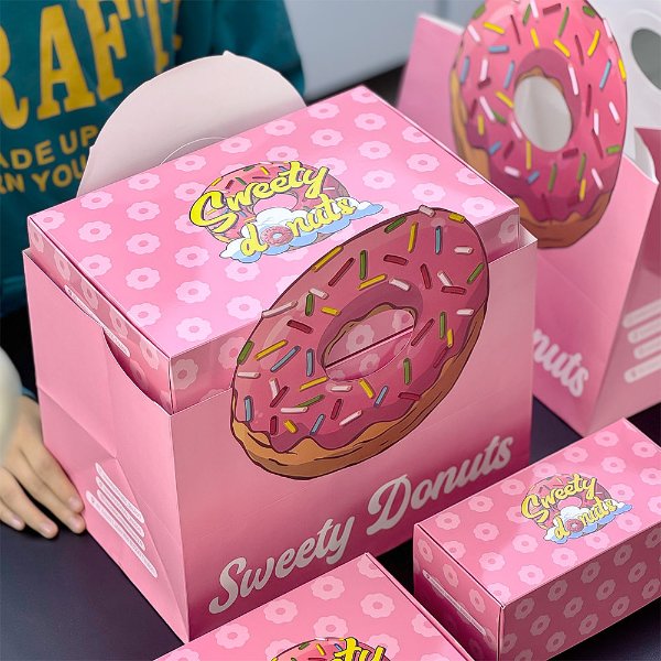 Custom Logo Food Grade Printing Foldable Paper Packaging Boxes for Cake Cookie Bread Pastry Donut Macaron Other Treats