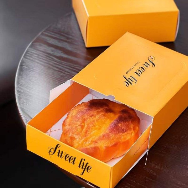 Custom Logo Orange Biodegradable Croissant Bread Packaging Box Food Packaging Drawer