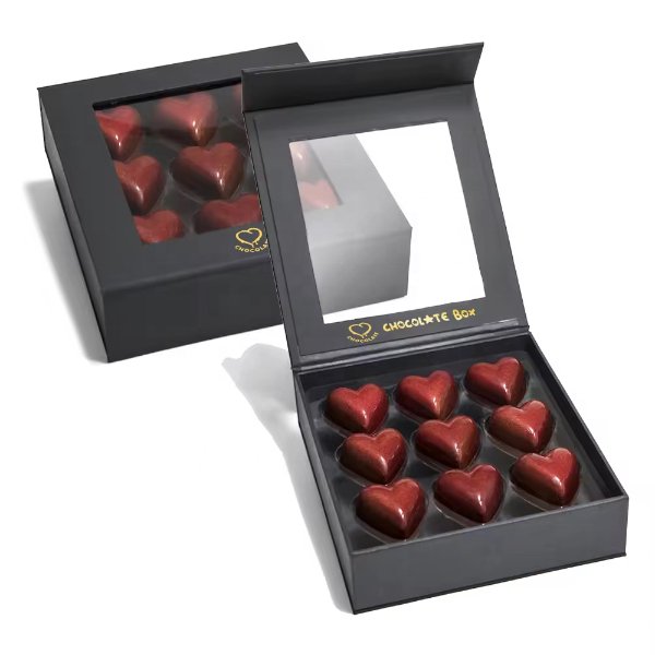 Custom Luxury Magnetic Closure Rigid Thick Cardboard Plastic Tray with PVC Window Insert Food Chocolate Packaging Gift Boxes