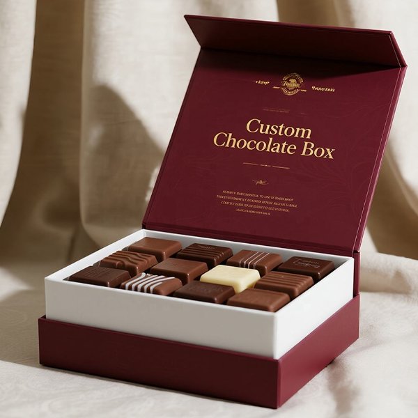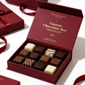 Custom Luxury Waterproof Chocolate Gift Box with Sponge Lining and Matt Lamination Burgundy Candy Magnetic Closure Packaging