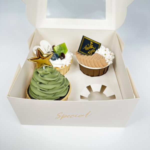 Hot Selling Custom Food Grade Paper Boxes with Window and Insert for CupCake Tart Pastry Packaging