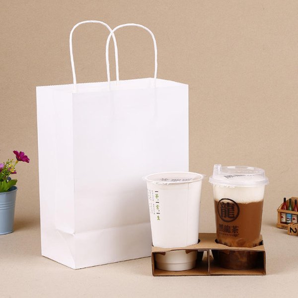 Custom Eco-Friendly White Craft Kraft Paper Food Takeaway Bag for Cakes Sugar