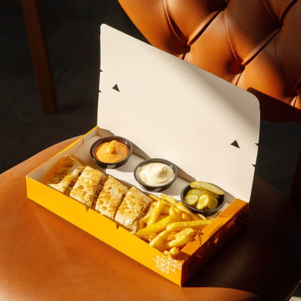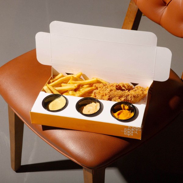 Take Away Fast Food Box Custom Disposable Food Container Fried Chicken Paper Box With Dipping