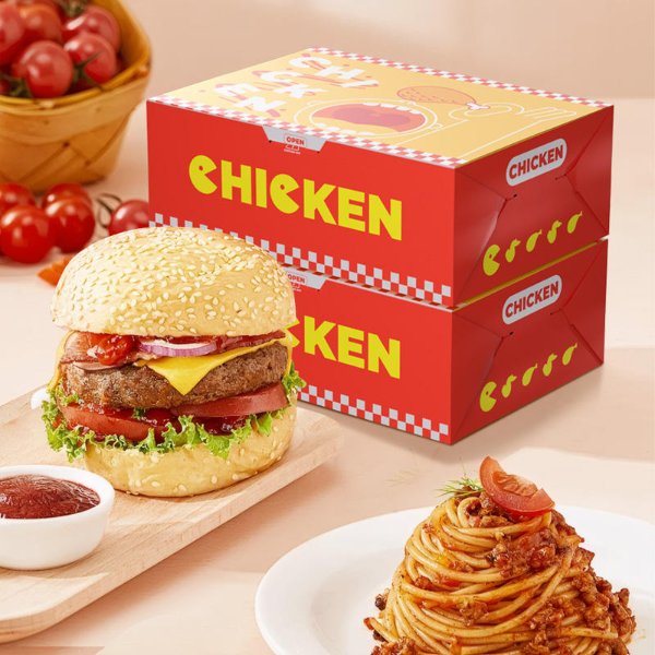 | Color | White + Black / Customize | Usage | Fast food, burger, pizza, donut, fried chicken packaging box |