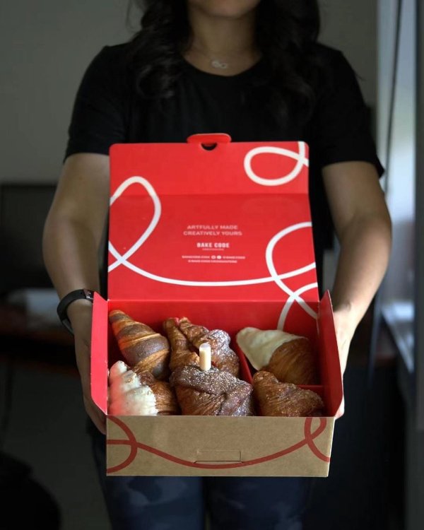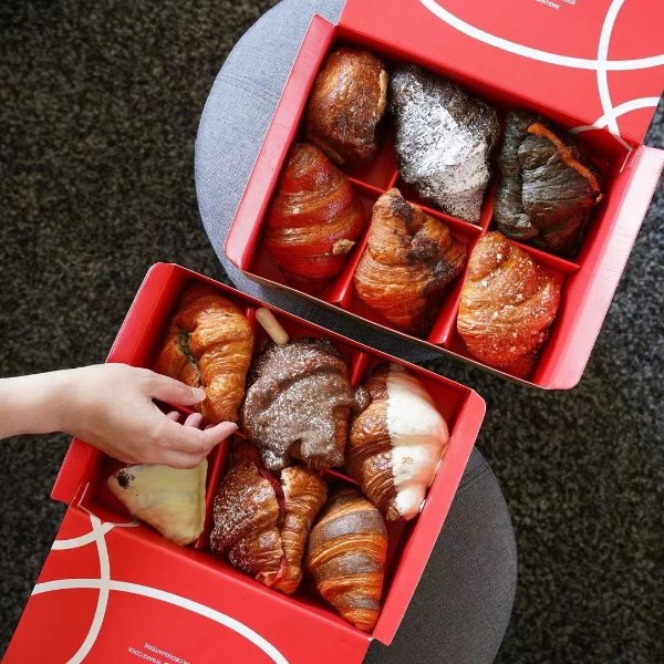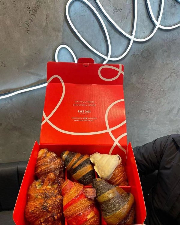 Wholesale Eco Friendly Customized Red Small Burger Croissant Box Sushi Bakery Chocolate Cake Catering Brownie Paper Packing Box
